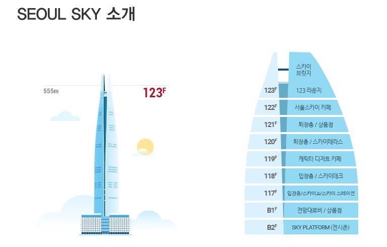 서울스카이는 롯데월드타워의 117층에서 123층에 위치한 전망대로, 높이는 무려 555미터에 달합니다. 이곳에서는 서울의 아름다운 경치를 360도 파노라마로 감상할 수 있으며, 특히 해질녘이나 야경이 아름답기로 유명합니다. 서울스카이는 다양한 전시와 체험 프로그램도 제공하고 있어, 가족 단위 방문객들에게도 인기가 많습니다.